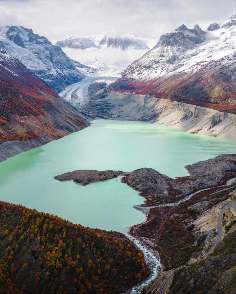 El glaciar Calluqueo será el protagonista de tu feed este otoño. En esta temporada, el contraste entre el hielo, la vegetación rojiza y las montañas crea un paisaje que parece de otro planeta.