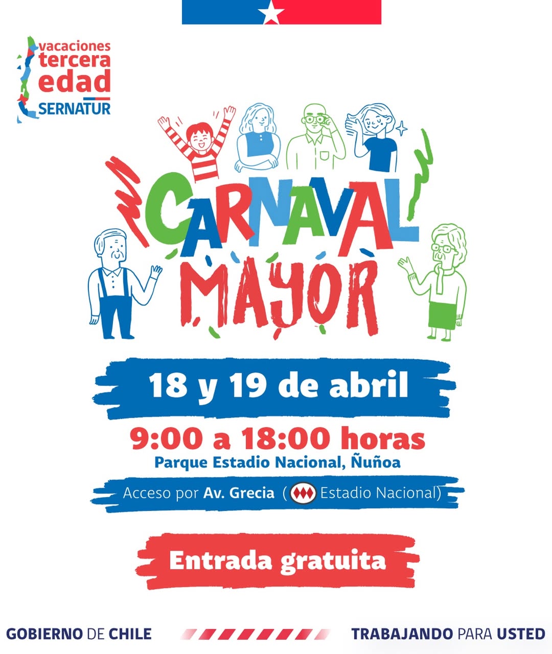 Se viene una nueva edición del Carnaval Mayor de Sernatur, evento gratuito que reúne shows en vivo e información sobre los viajes subsidiados de Sernatur. Y por primera vez se extenderá durante dos días, los próximos 18 y 19 de abril en el Parque Estadio Nacional.