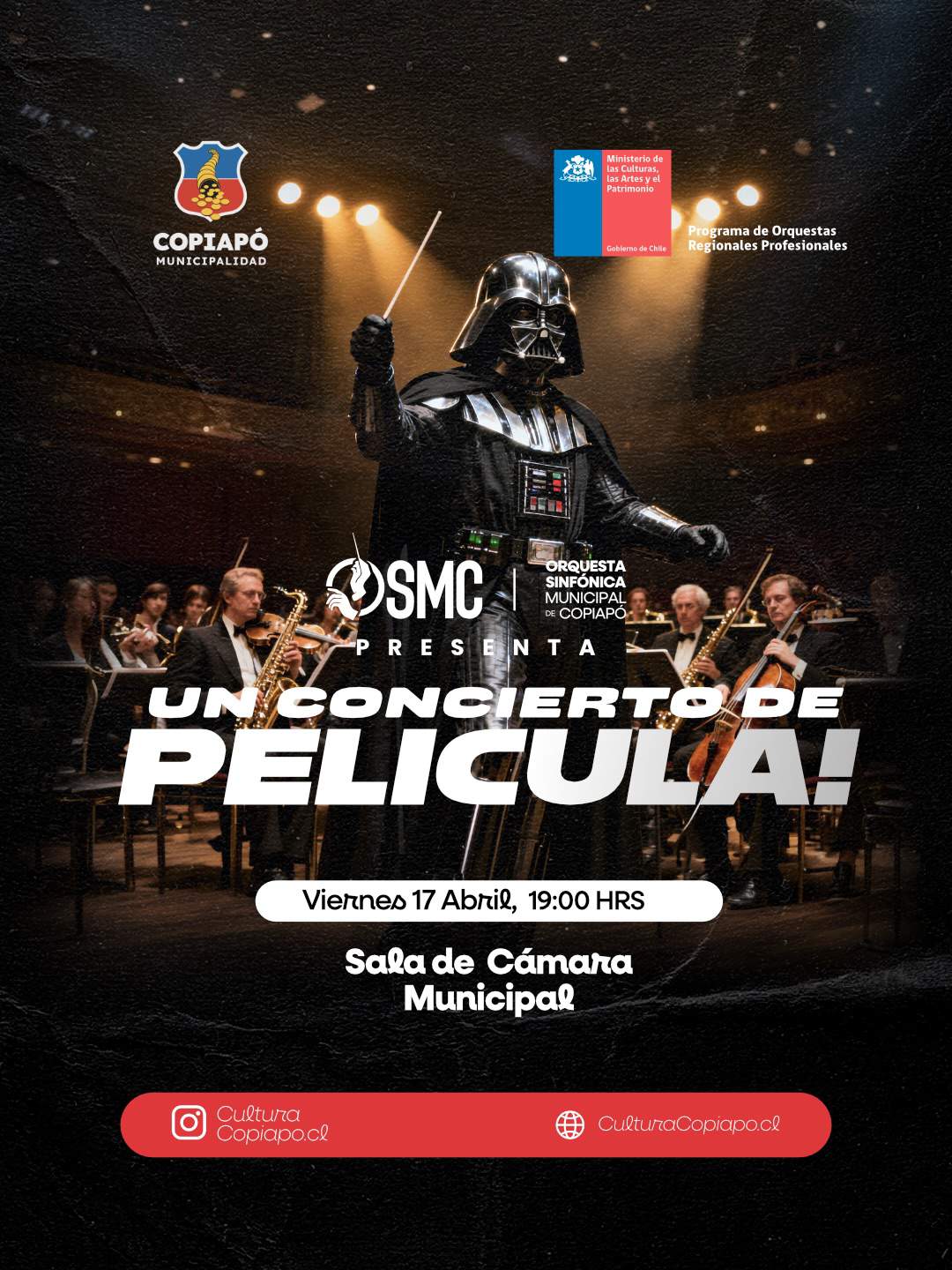 La Orquesta Sinfónica Municipal de Copiapó (OSMC) realizará una gala musical extraordinaria titulada «Un concierto de película» el próximo viernes 17 de abril.