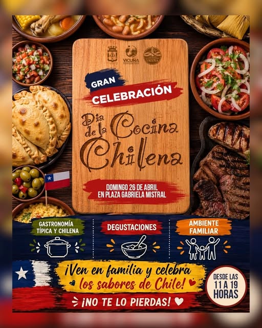 ¡Celebra el Día de la Cocina Chilena en Vicuña! ¿Cuándo y dónde? Este domingo 26 de abril en la Plaza Gabriela Mistral.