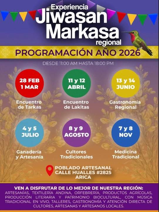 El Poblado Artesanal de Arica se transformará en el escenario de la feria Jiwasan Markasa, una experiencia cultural que se desarrolla los días 13 y 14 de junio.