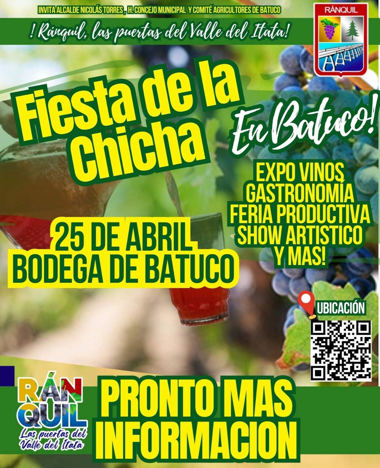 Este sábado 25 de abril, la localidad de Batuco, en la comuna de Ránquil, invita a una nueva edición de su clásica Fiesta de la Chicha.