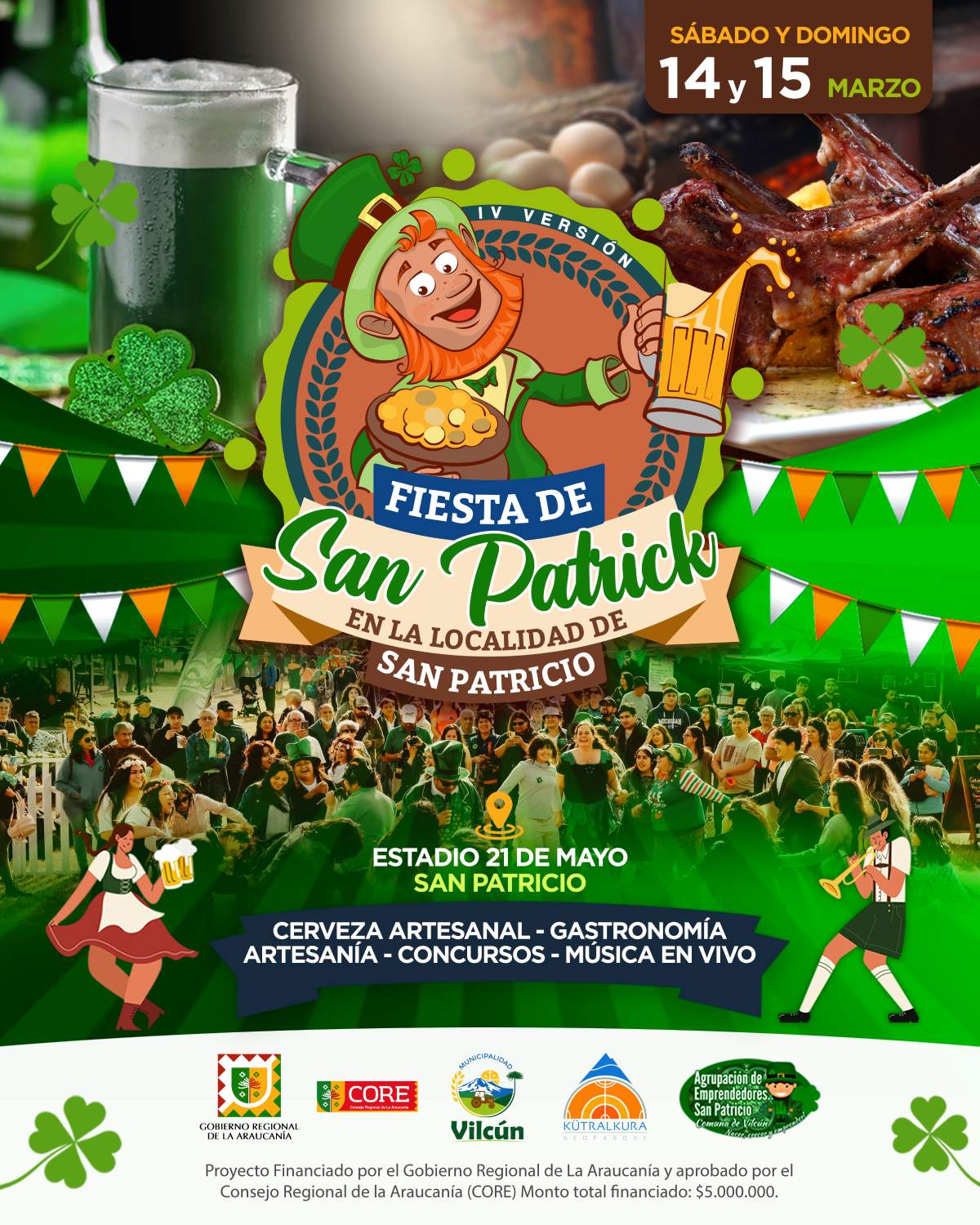 Está todo listo para la mejor fiesta cervecera de La Araucanía. La Fiesta de San Patrick te espera con todo para que lo pases en grande en la localidad de San Patricio, en la comuna de Vilcún.
