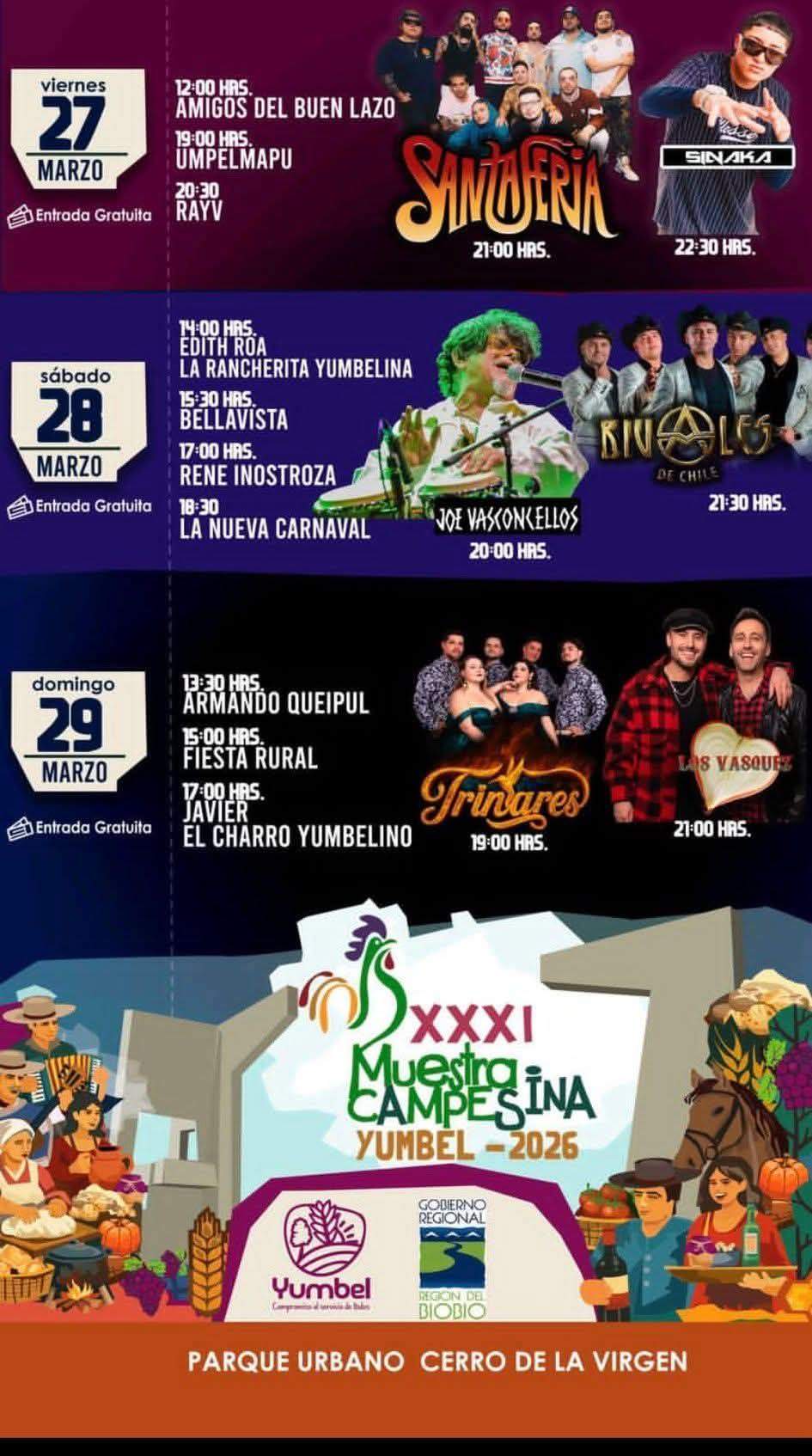 La entrada es totalmente gratuita, consolidando a Yumbel como el epicentro de las tradiciones campesinas en este último fin de semana de marzo.