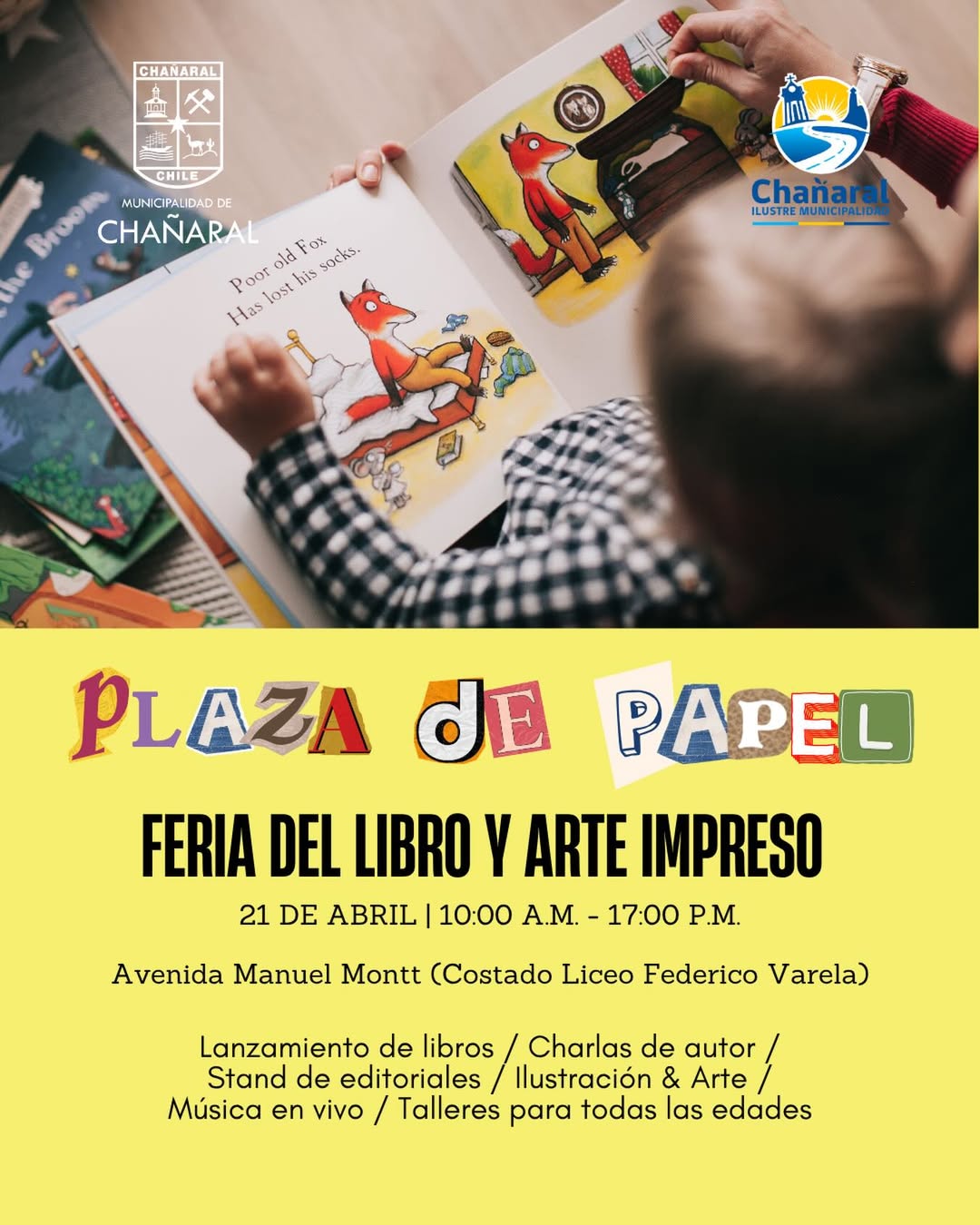 La comunidad de la Región de Atacama recibirá una nueva instancia dedicada al fomento lector y la expresión visual con la feria “Plaza de Papel – Feria del libro y arte impreso”.