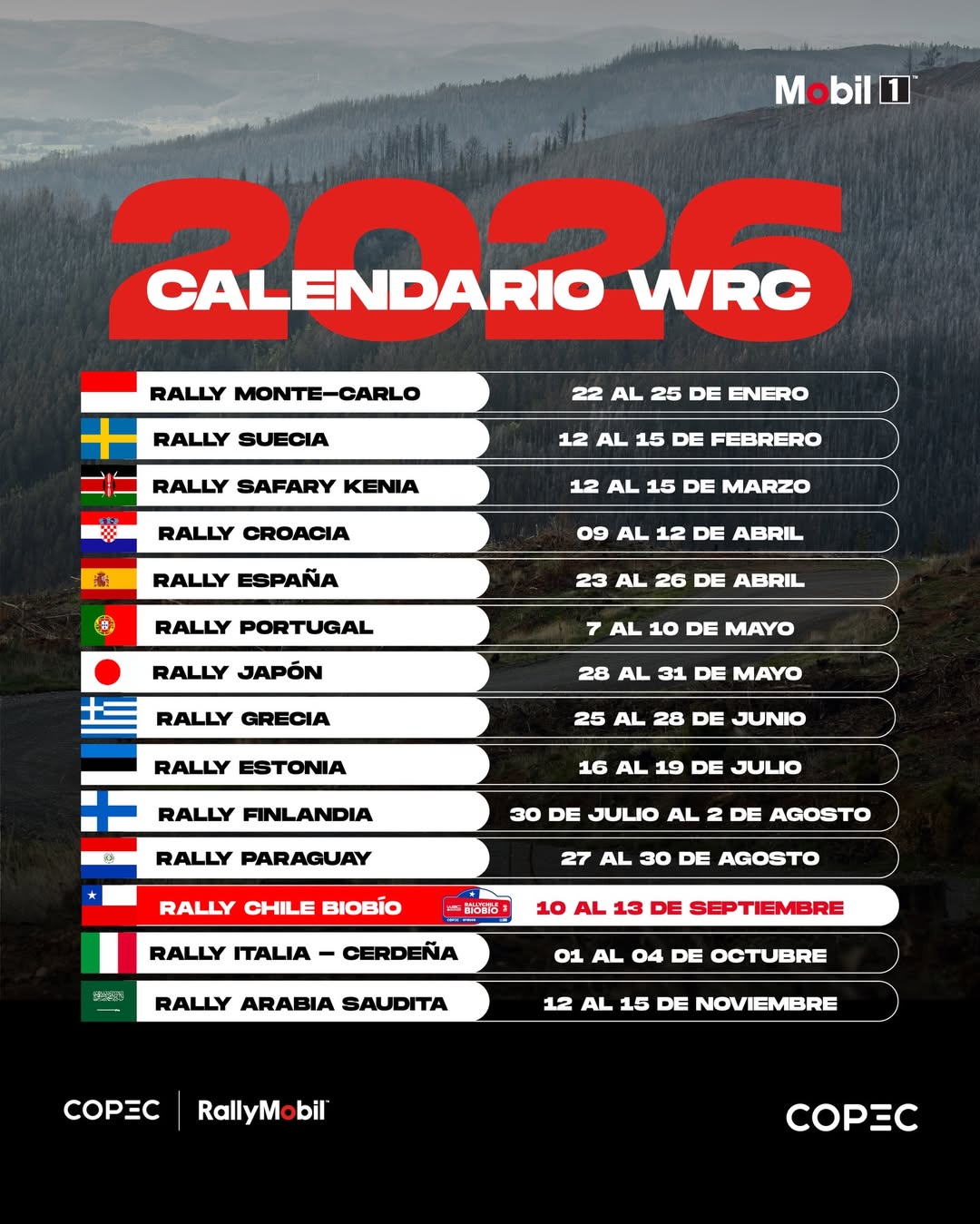 Del 10 al 13 de septiembre de 2026, los mejores pilotos y equipos del planeta se enfrentarán a los desafiantes caminos rurales y forestales de la zona, consolidando este evento como una de las citas deportivas más importantes del calendario internacional.