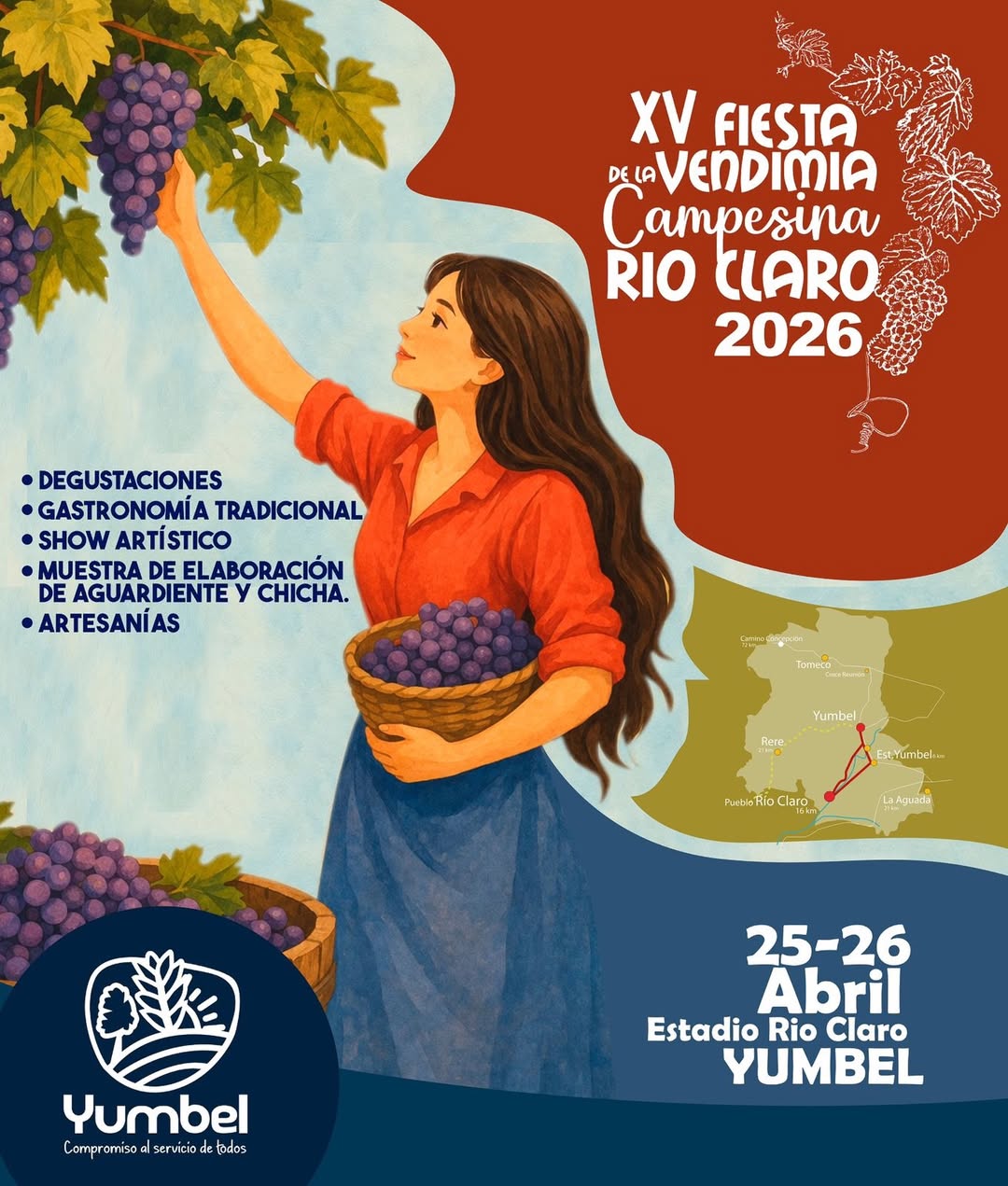 Esta fiesta del vino se realizará el 25 y 26 de abril en el Estadio Río Claro. Para más información, consulta las redes sociales del municipio.