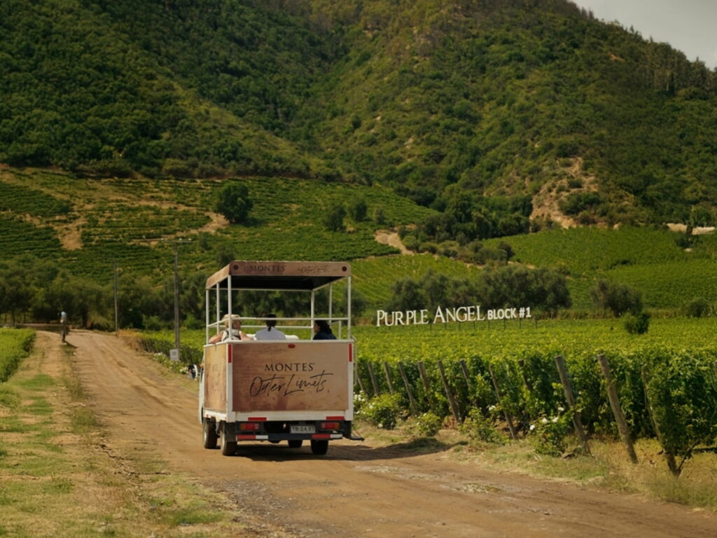 A diferencia de un recorrido tradicional por una bodega, el Evolution Tour de Viña Montes está pensado como una experiencia completa. La visita comienza con una caminata técnica entre los viñedos, donde guías especializados explican cómo el microclima de Apalta y la geografía de cerros influyen en el carácter de sus vinos icónicos.